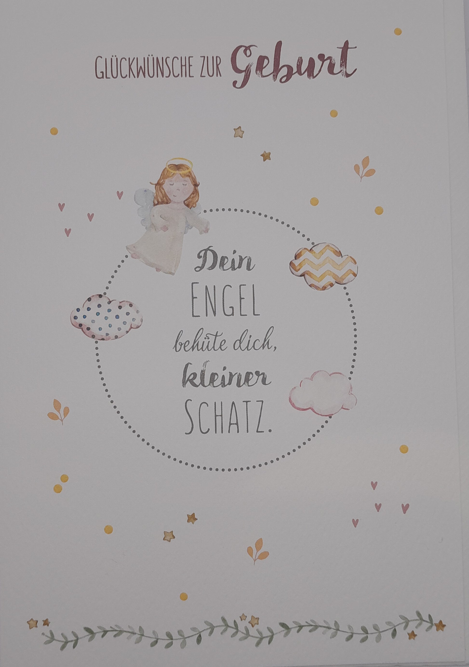 Text auf der Vorderseite: Dein Engel behüte dich, kleiner Schatz.