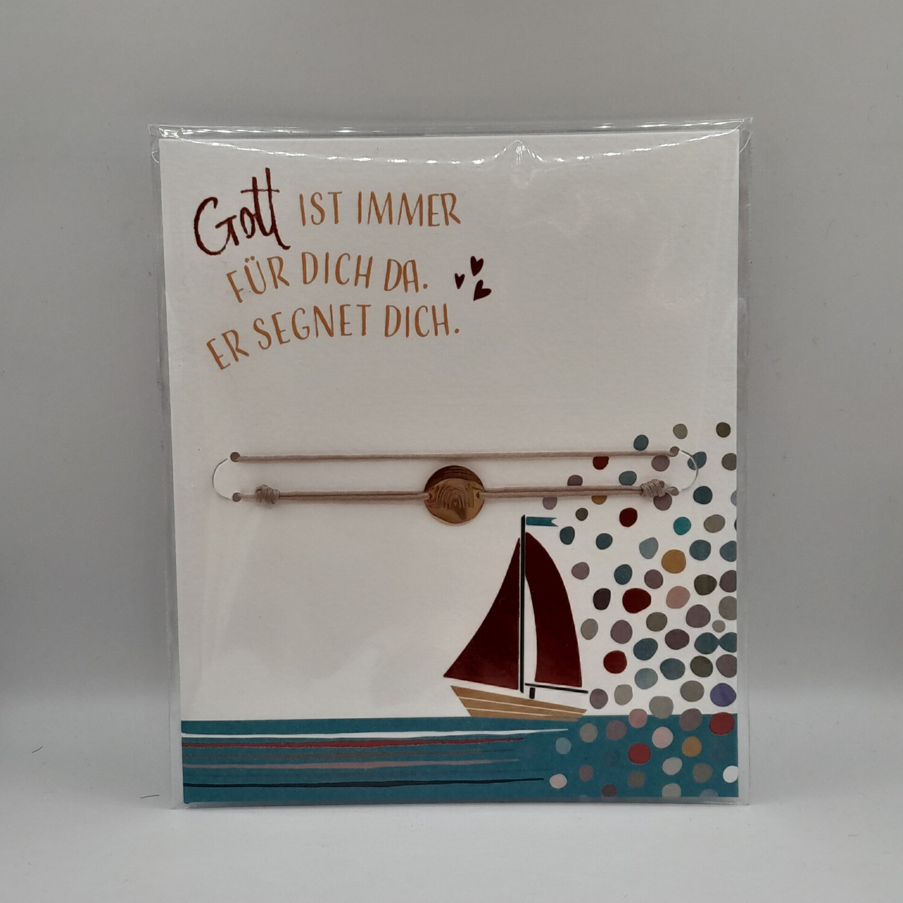 Aufdruck auf Karton: Gott ist immer für dich da. Er segnet dich.