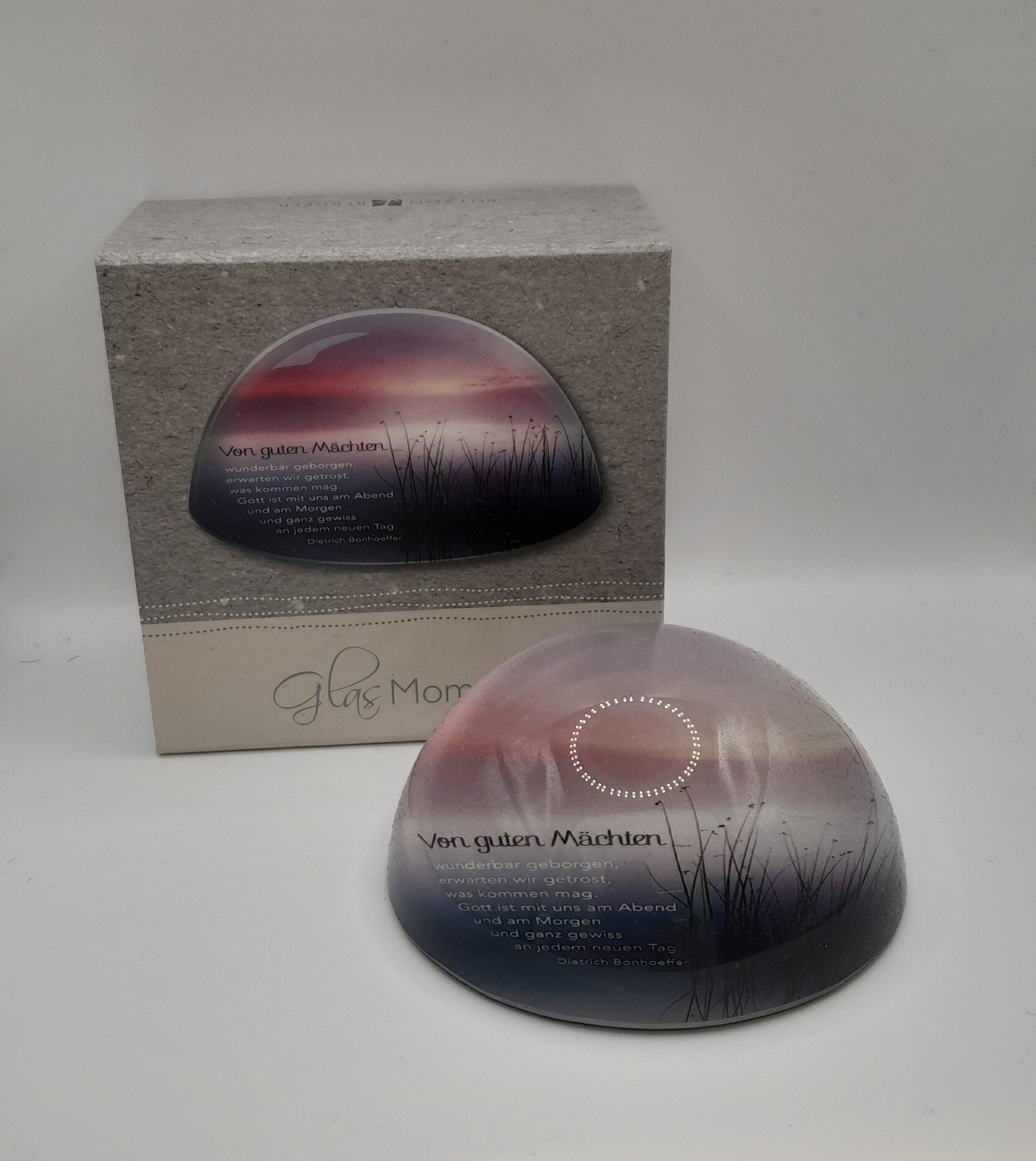 Dekorative Glaskuppel (Briefbeschwerer), rückseitig bedruckt