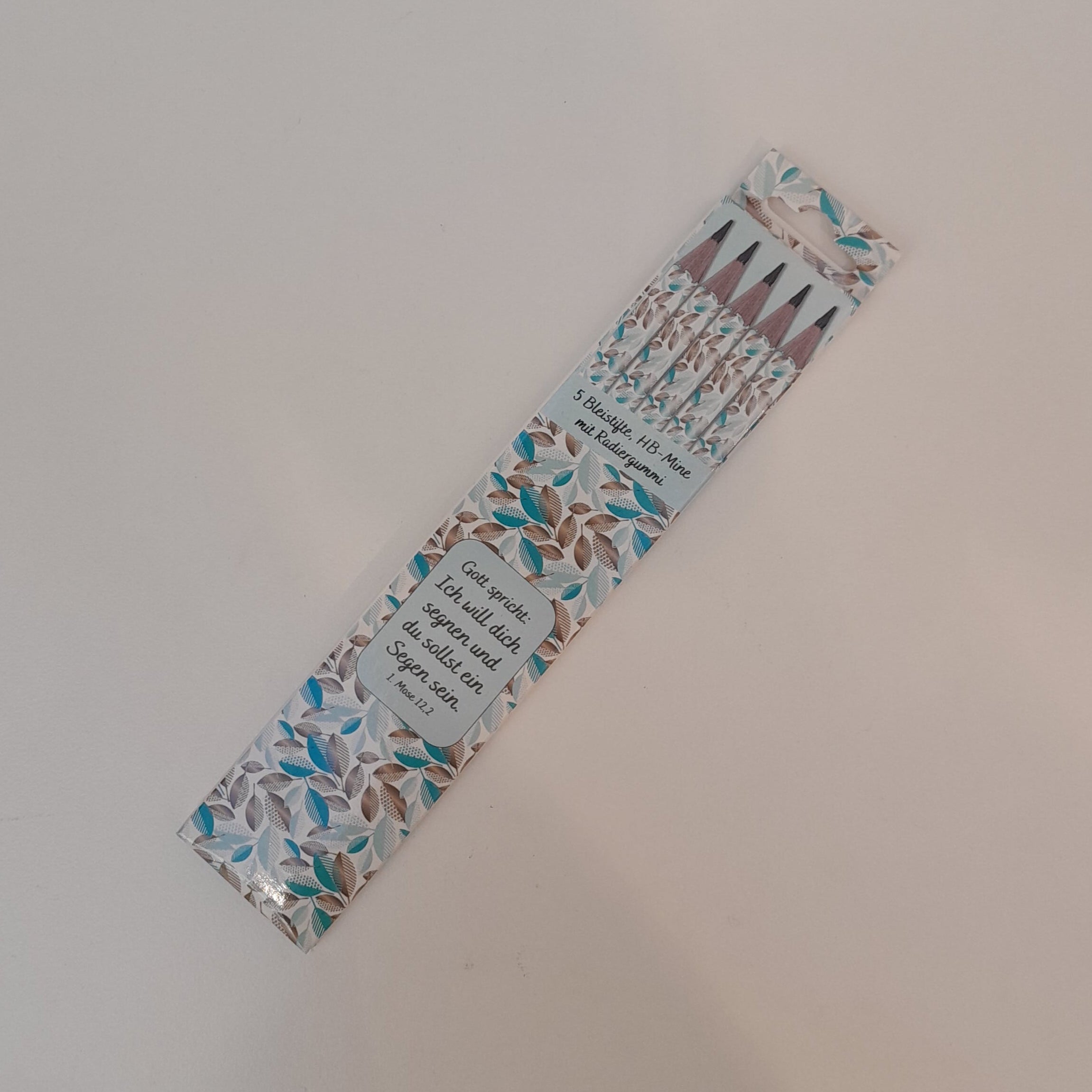 5 Bleistifte HB-Mine, mit Radiergummi, in der Geschenkpackung