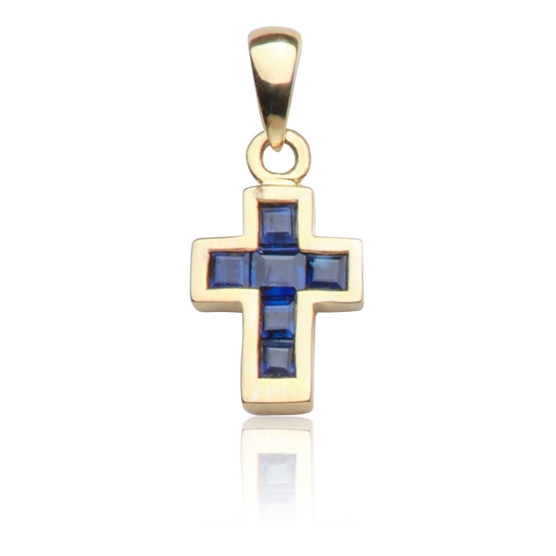 Kettenanhänger Kreuz Gold 585 mit blauen Zirkonia