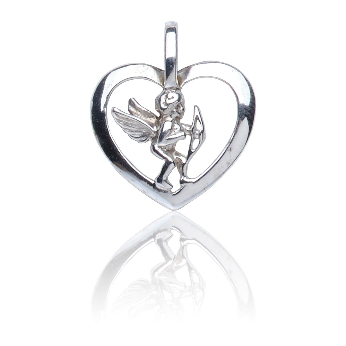 in Form eines Herzens, darin ein Engelchen / Amor mit Pfeil und Bogen