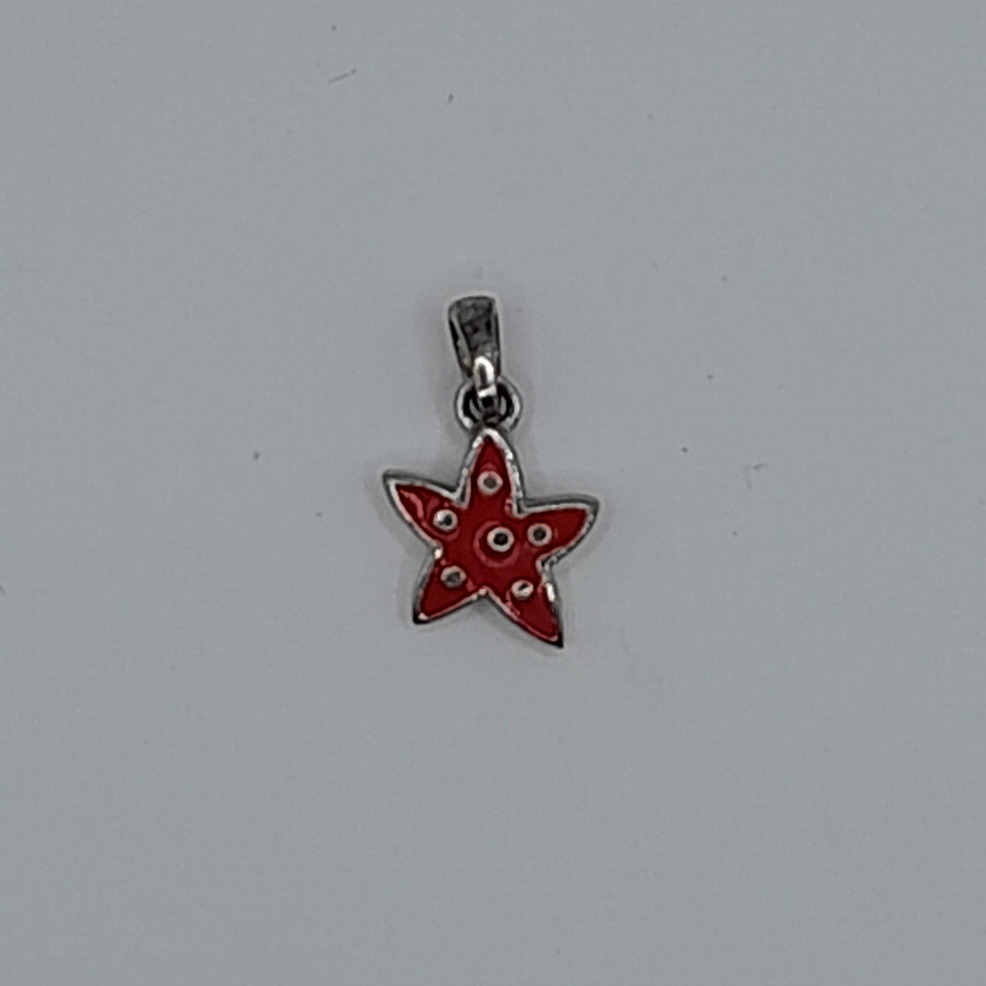 Kettenanhänger aus 925 Silber, in Sternenform, teilweise lackiert in Rot