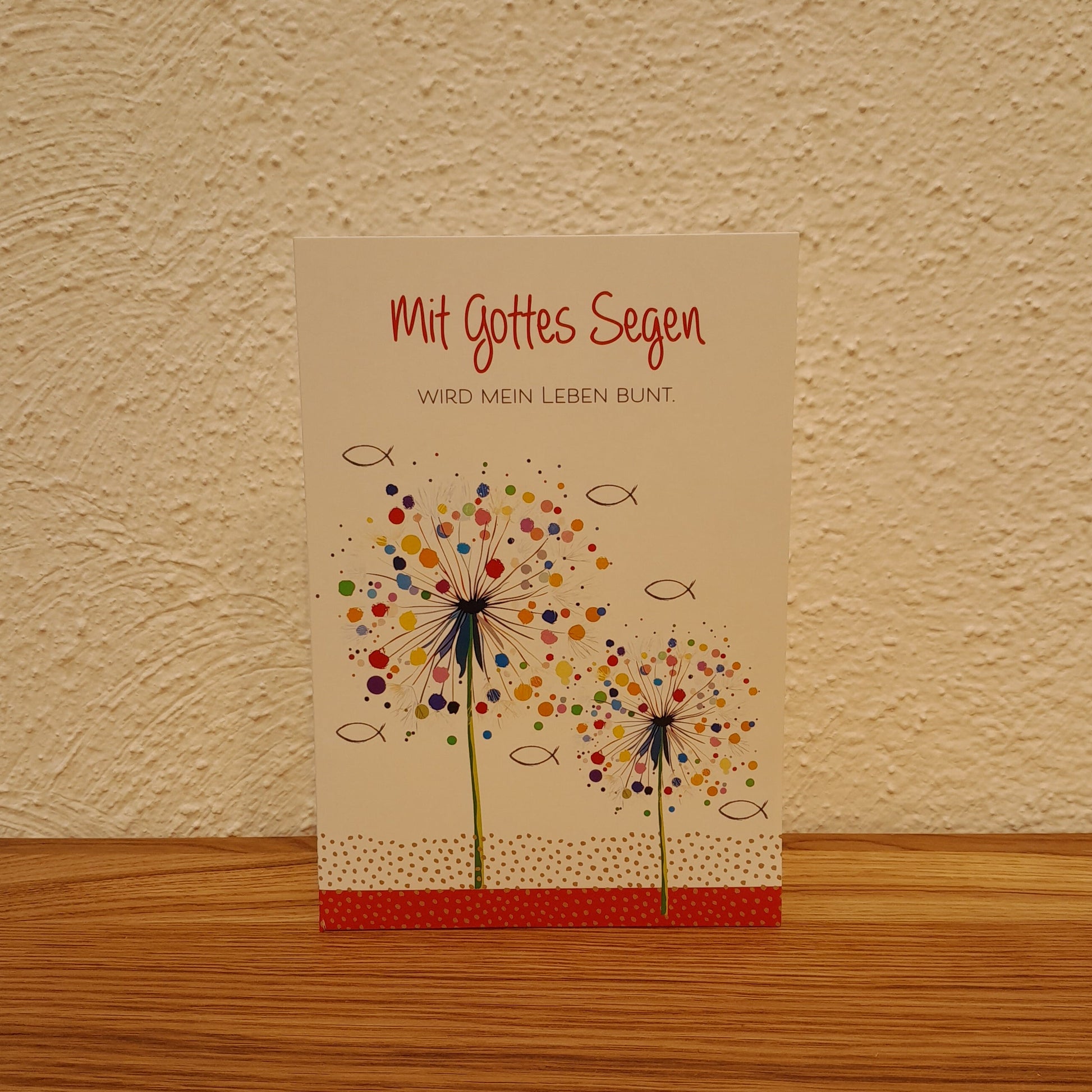 Text auf Vorderseite: Mit Gottes Segen wird mein Leben bunt.