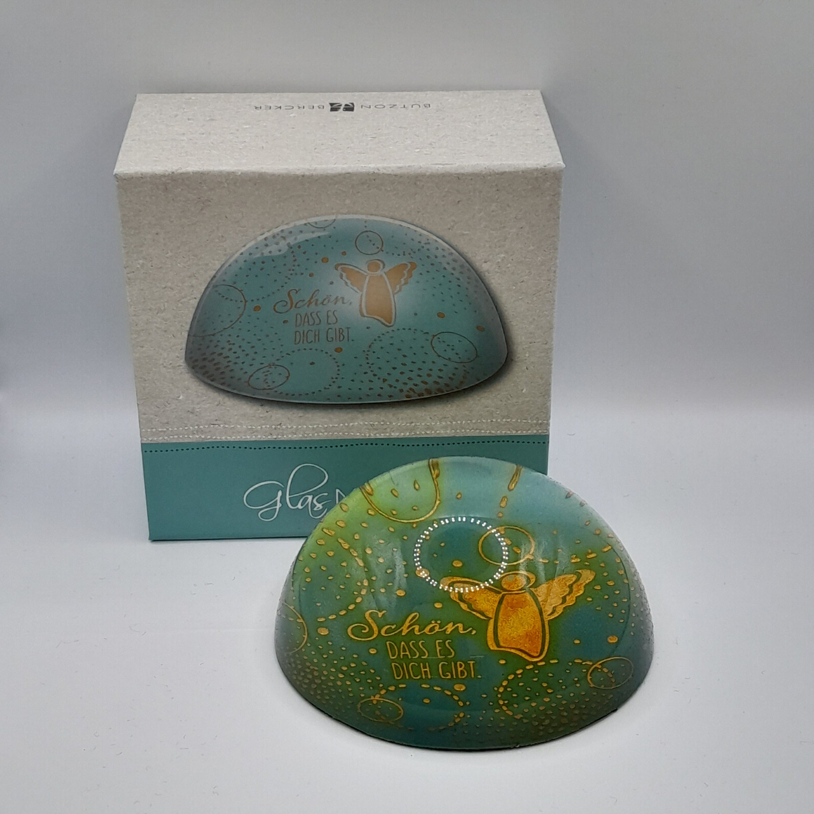 Dekorative Glaskuppel (Briefbeschwerer), rückseitig bedruckt