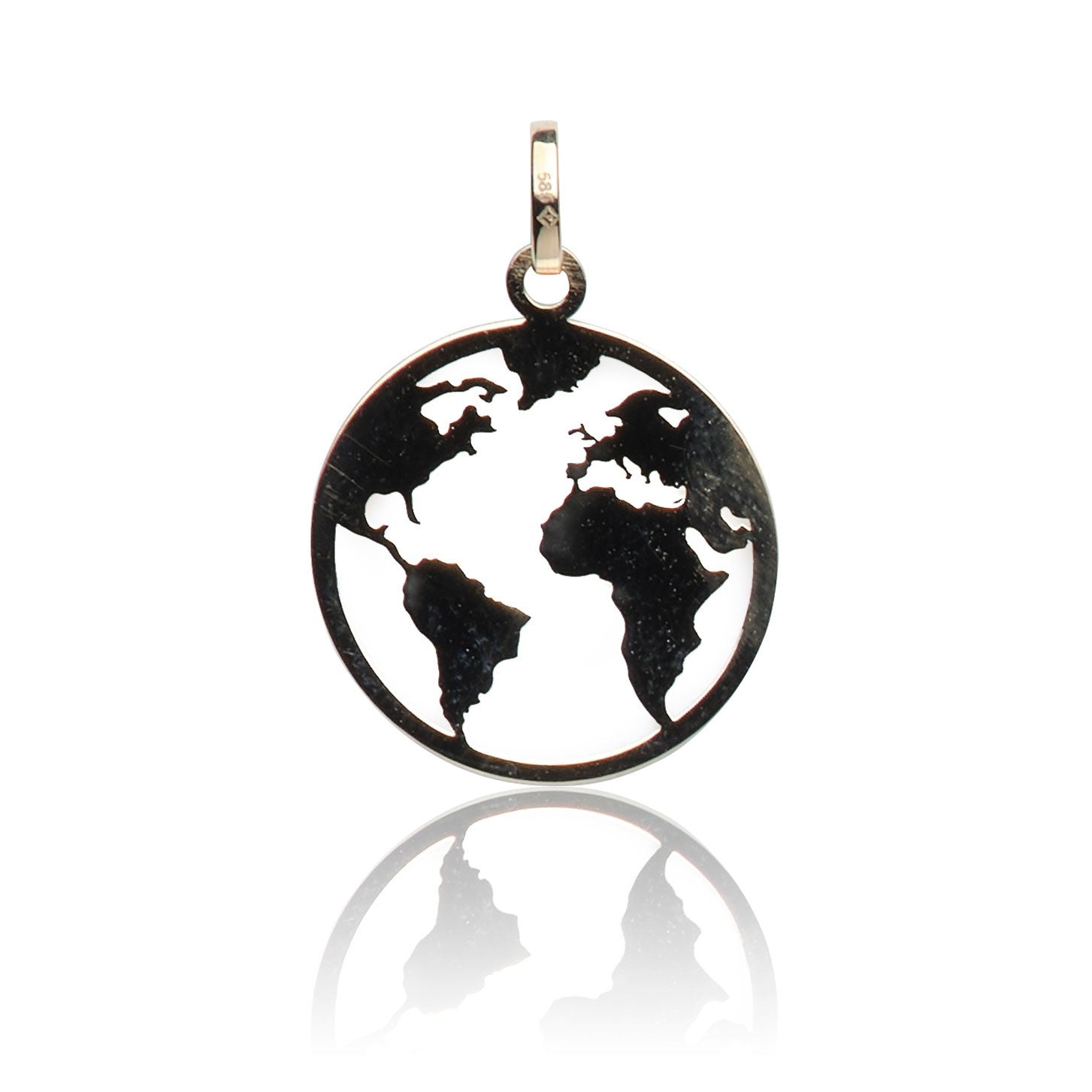 der außergewöhnliche Kettenanhänger aus 585 Gelbgold zeigt eine Erdkugel.