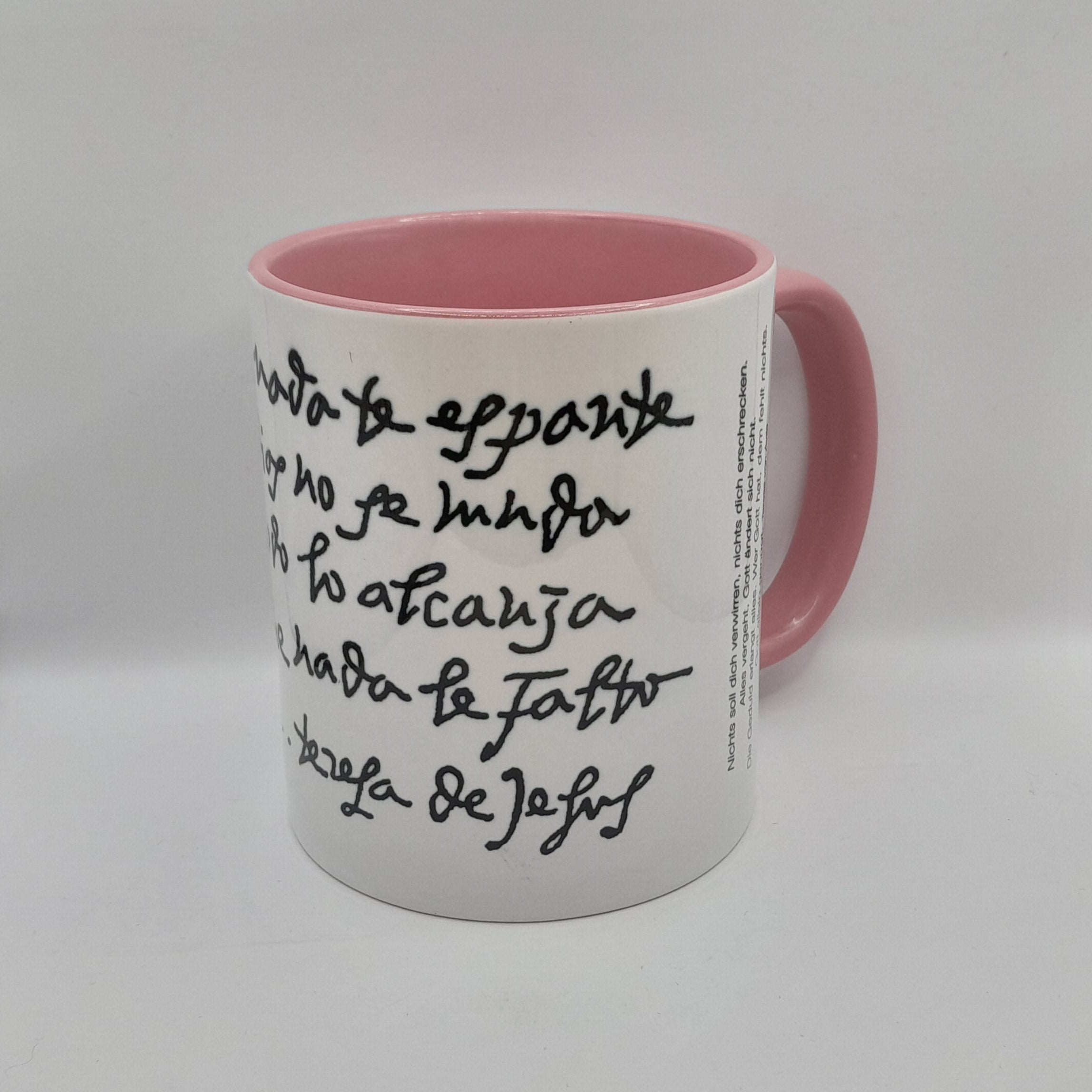 Unsere hochwertigen Keramik-Haferltassen sind ein sehr beliebtes Geschenk für Freunde und Familie. Das einzigartige Design in der Handschrift der Hl. Teresa von Ávila macht die Tasse zu einem schönen Geschenk!