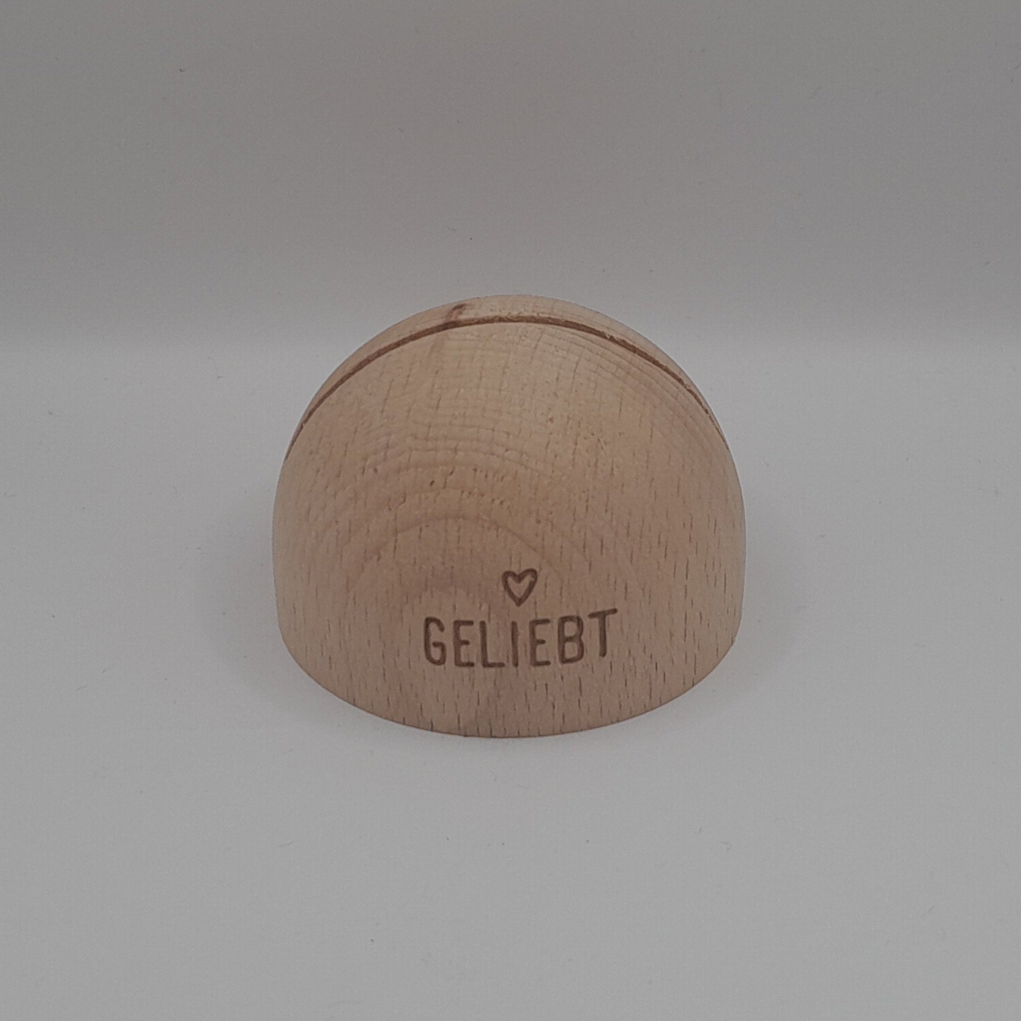 Ein Kartenhalter, halbkugelförmig aus Holz