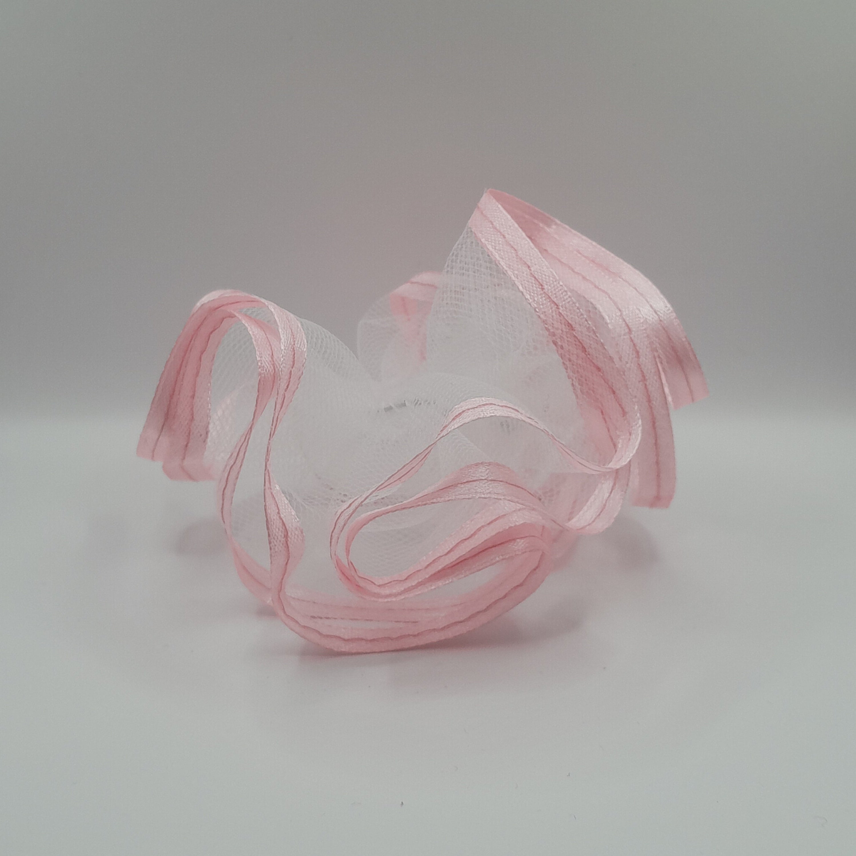 aus Tüll, mit einem dünnen Satinband als Abschluss