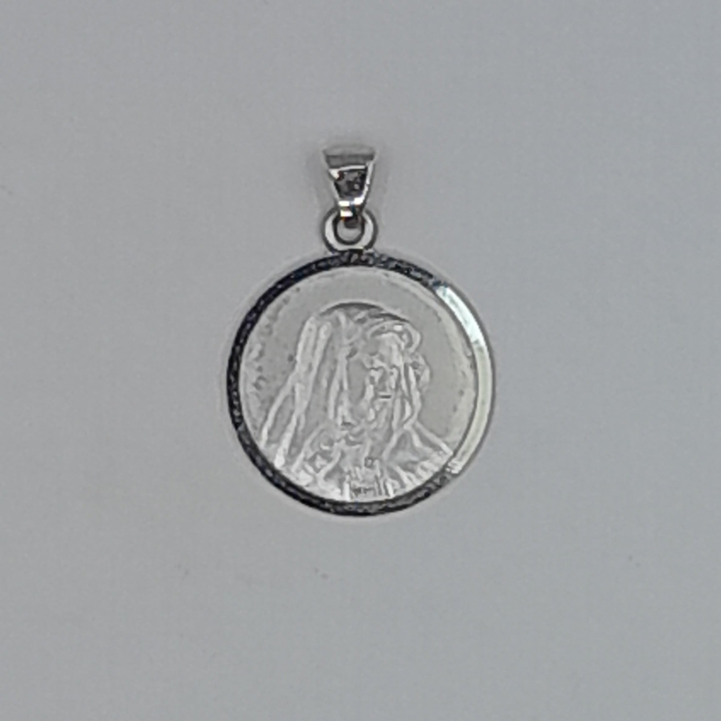 Die Vorderseite zeigt ein Portrait der Madonna, auf der Rückseite ist der Text "Gott schütze dich" eingraviert.