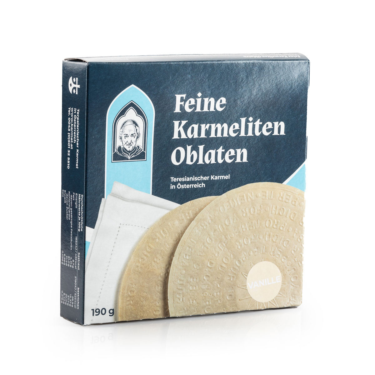 Mit dem Kauf dieser Oblaten (Packung 190 g) unterstützen Sie soziale Projekte der tschechischen Caritas. Sie finden diese Oblaten nur auf diesem eShop, an der Klosterpforte in Wien (Silbergasse 35) und im Klosterladen Linz (Landstr. 33).