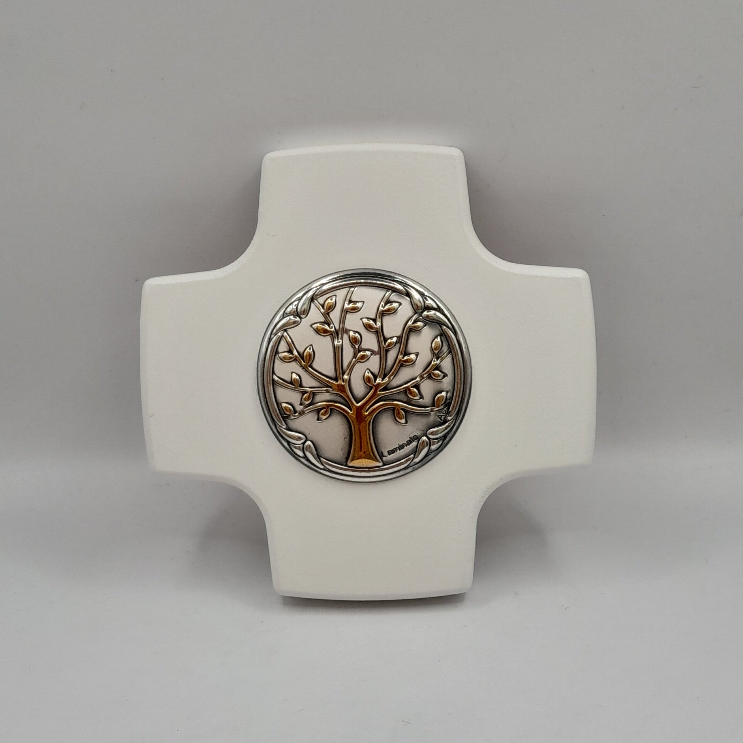 Wandkreuz Holz weiß "Lebensbaum"