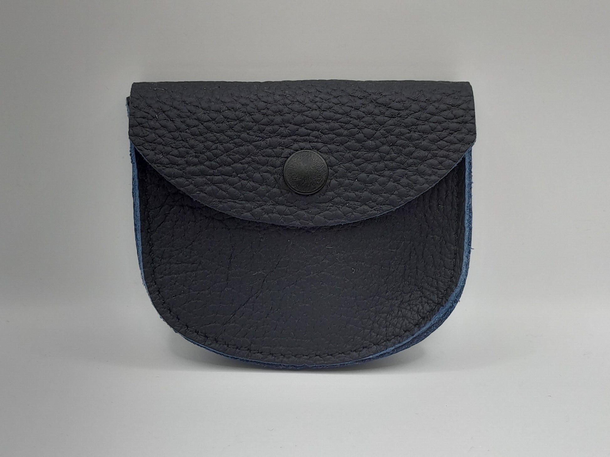 Rosenkranztäschchen aus sehr dunklem blauen Leder, mit Druckknopf