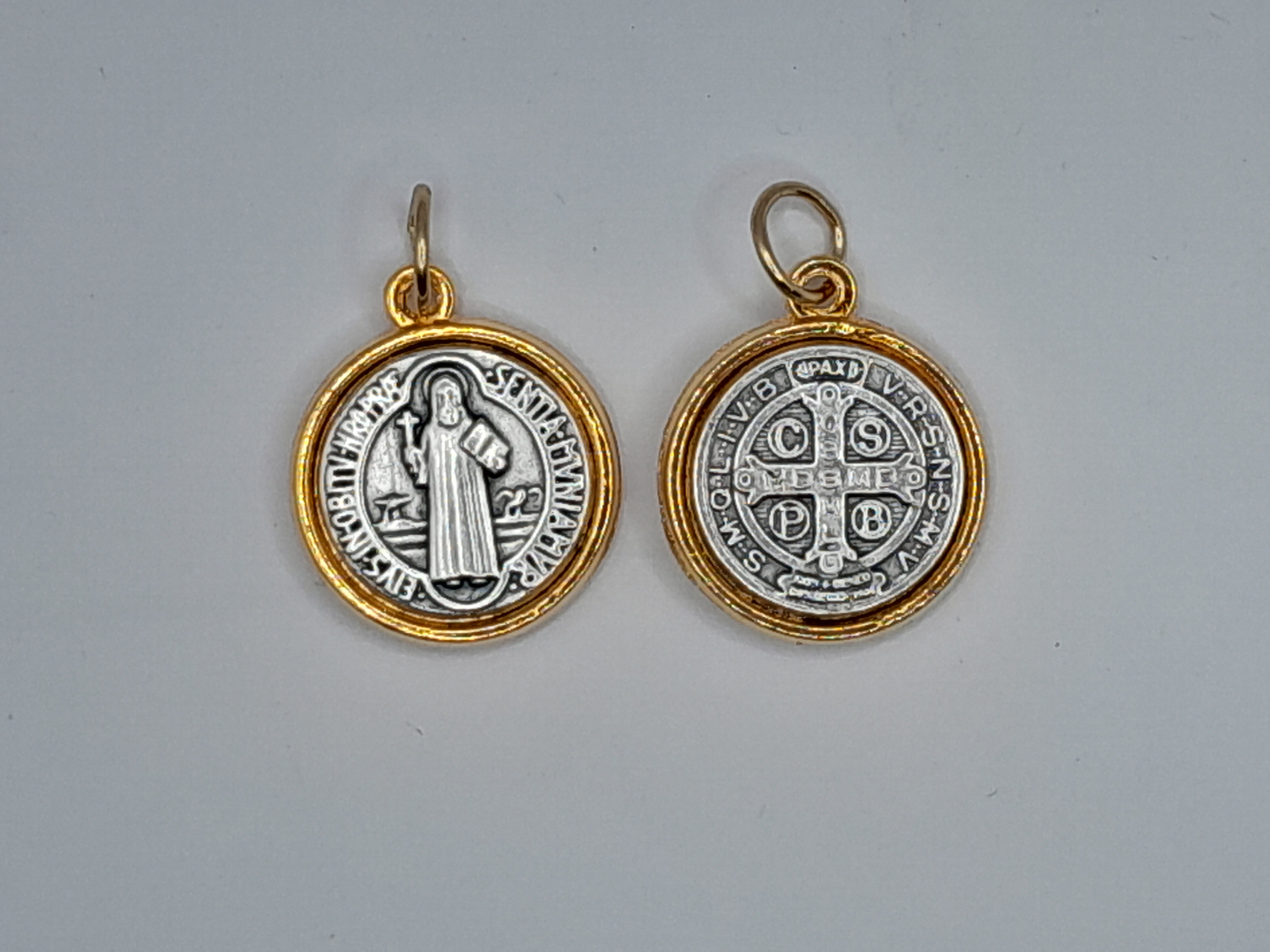 Benediktus-Anhänger aus silberfarbenem und goldfarbenem Metall