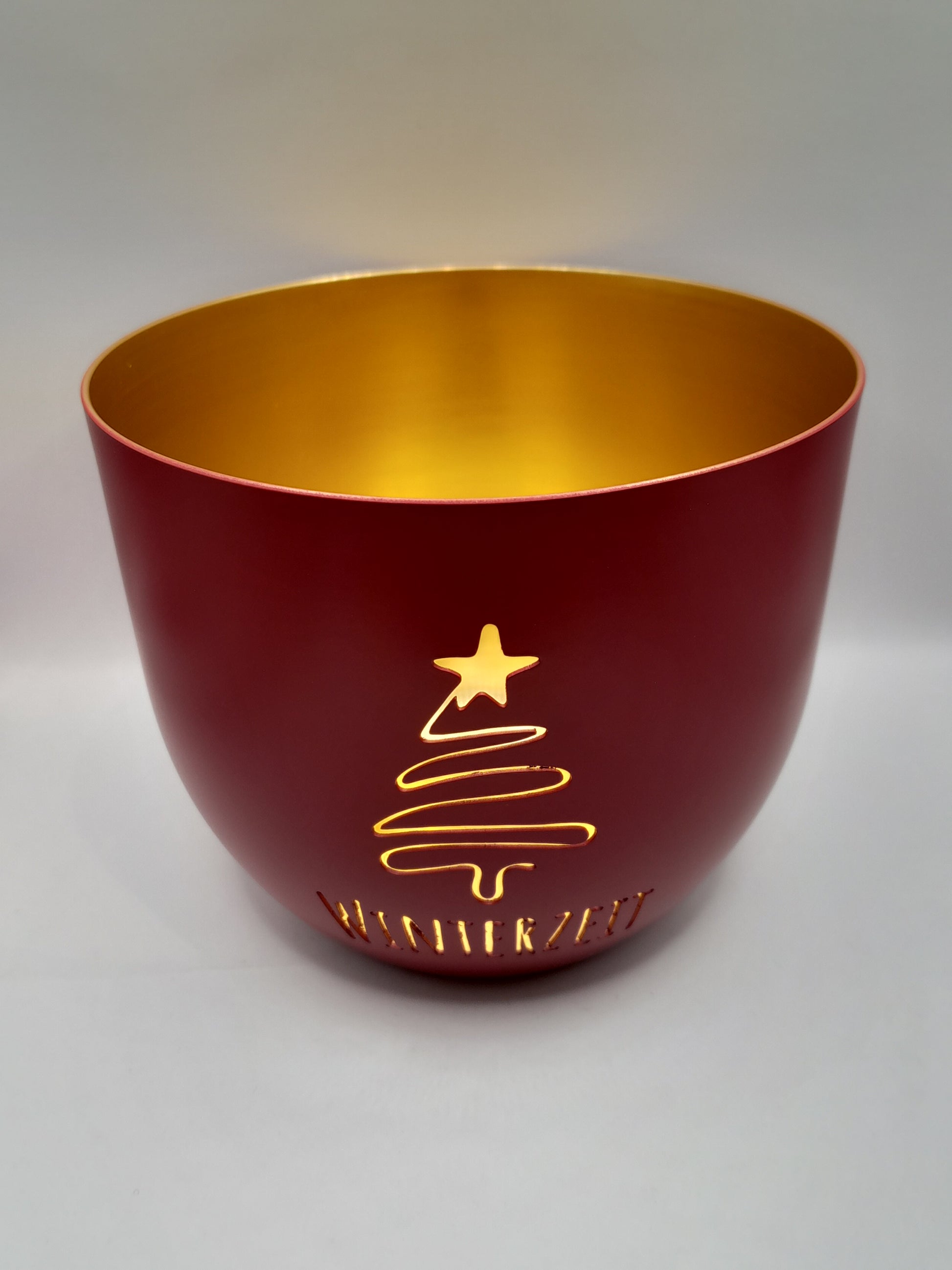 Metallwindlicht " Winterzeit " Rot/ Gold