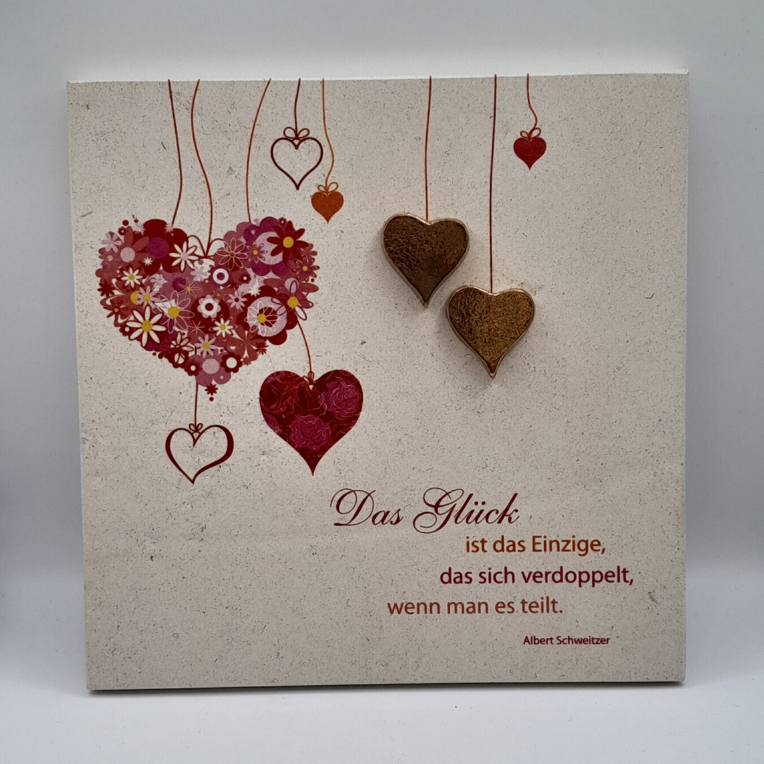 Natursteinplatte m. Bronzeherzen "Das Glück..."
