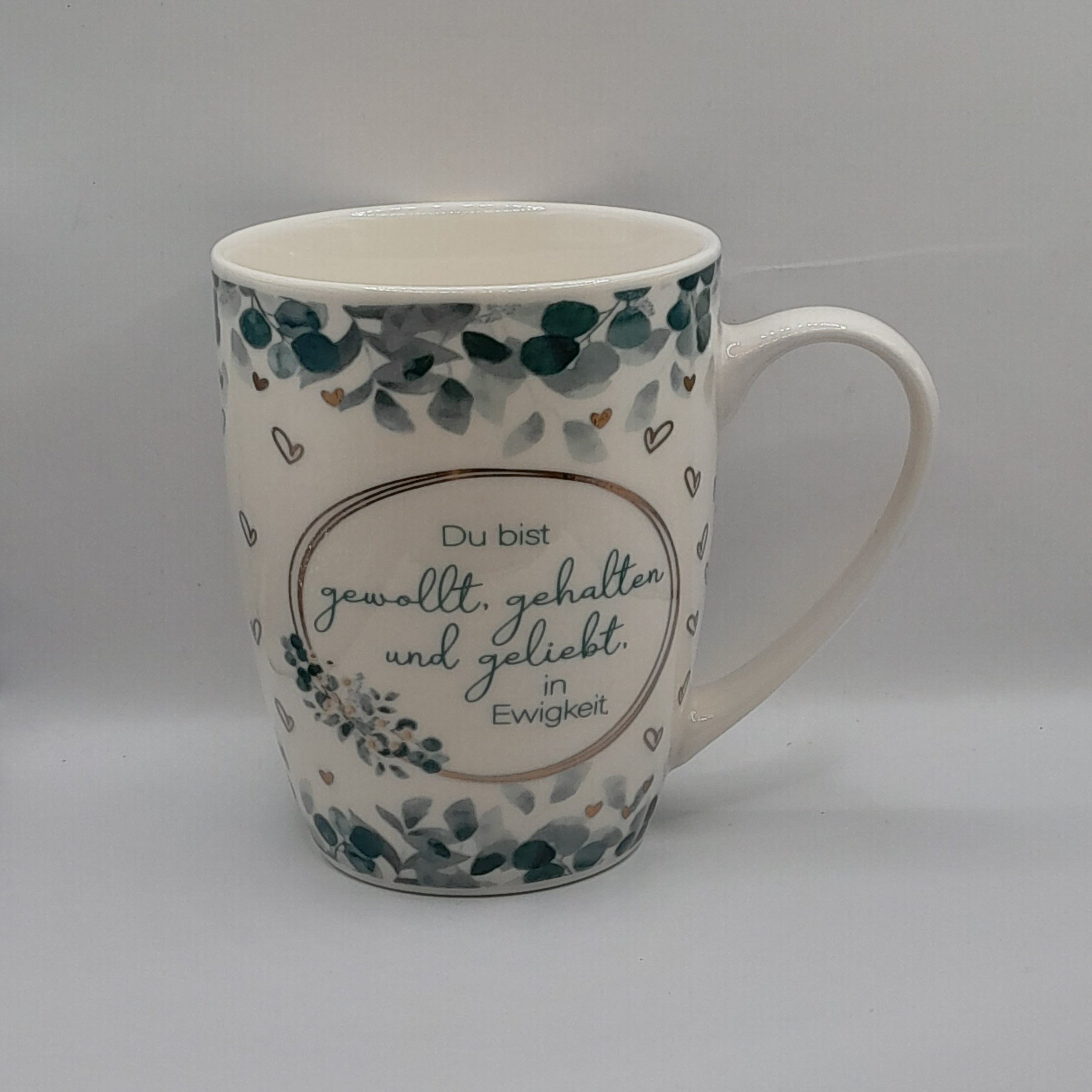 Porzellantasse "Gewollt, gehalten, geliebt"