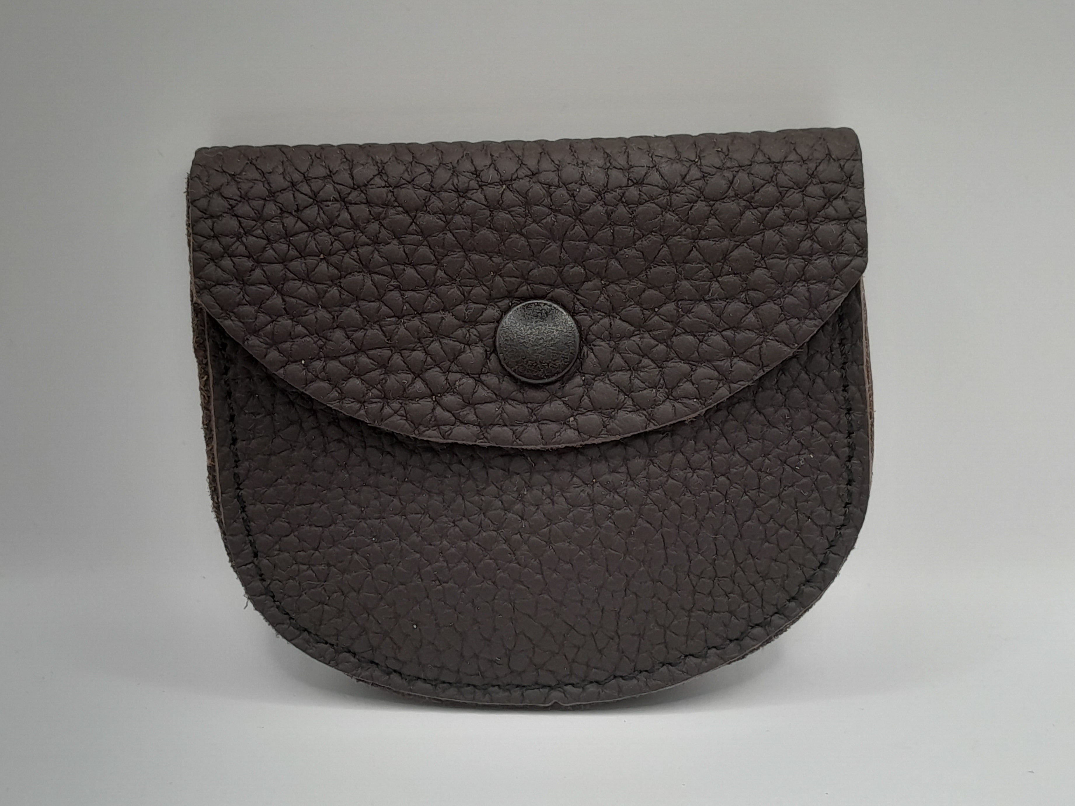 Braunes Rosenkranztäschchen aus Leder, mit Druckknopf