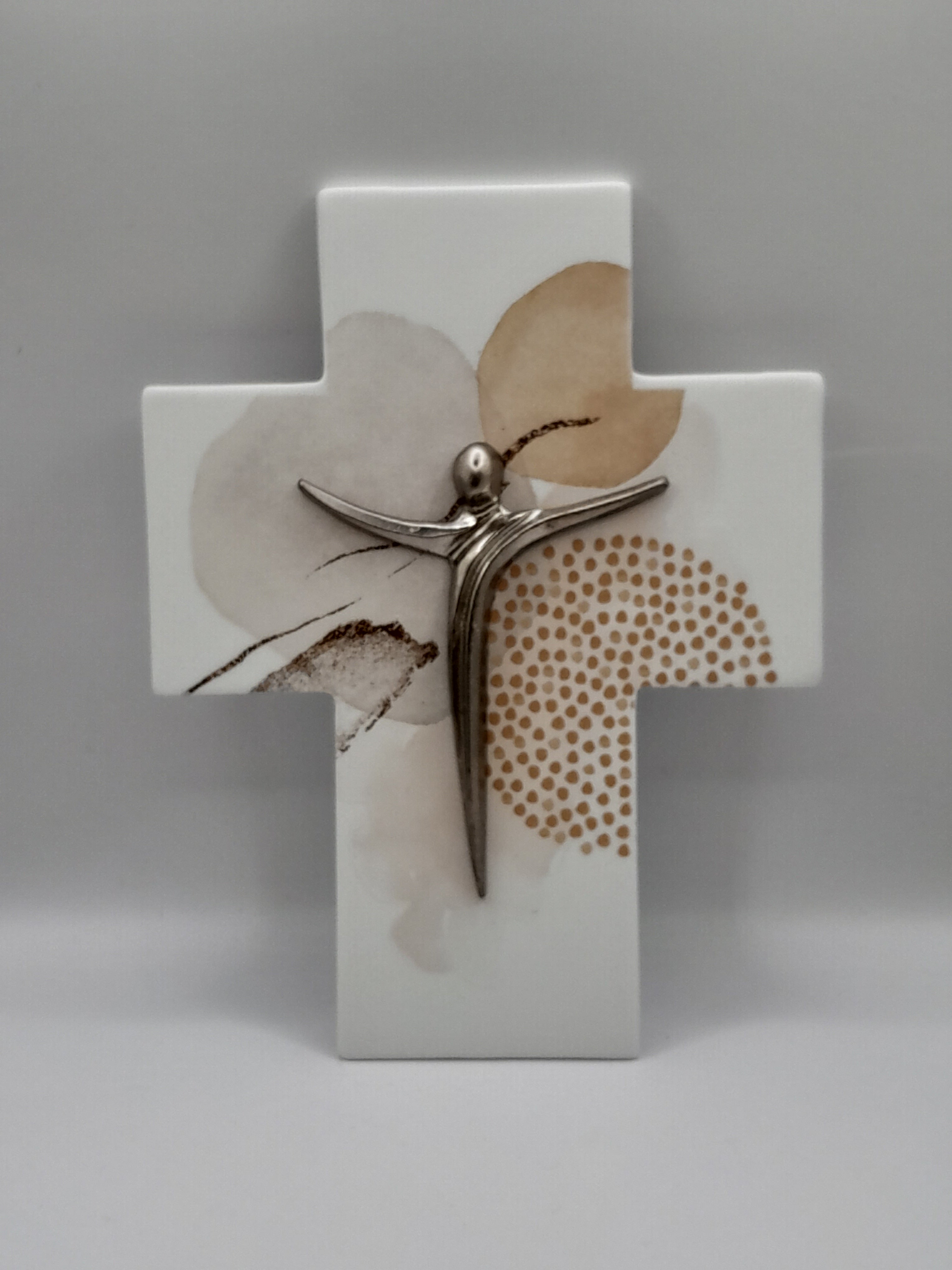 Wandkreuz Porzellan mit Metallcorpus (beige)