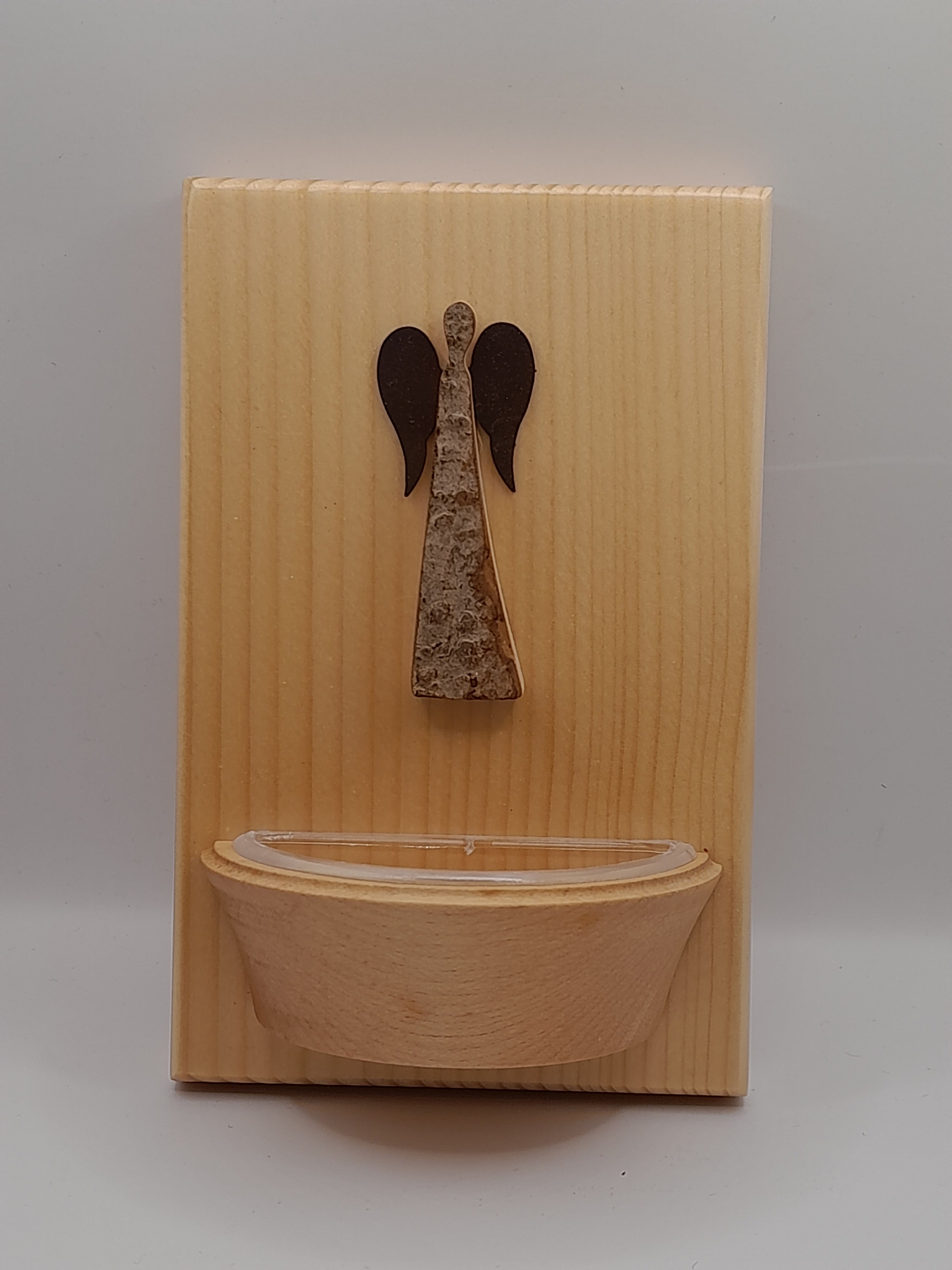 aus Holz, mit einem stilisierten Engel aus Holz, Flügel aus Metall