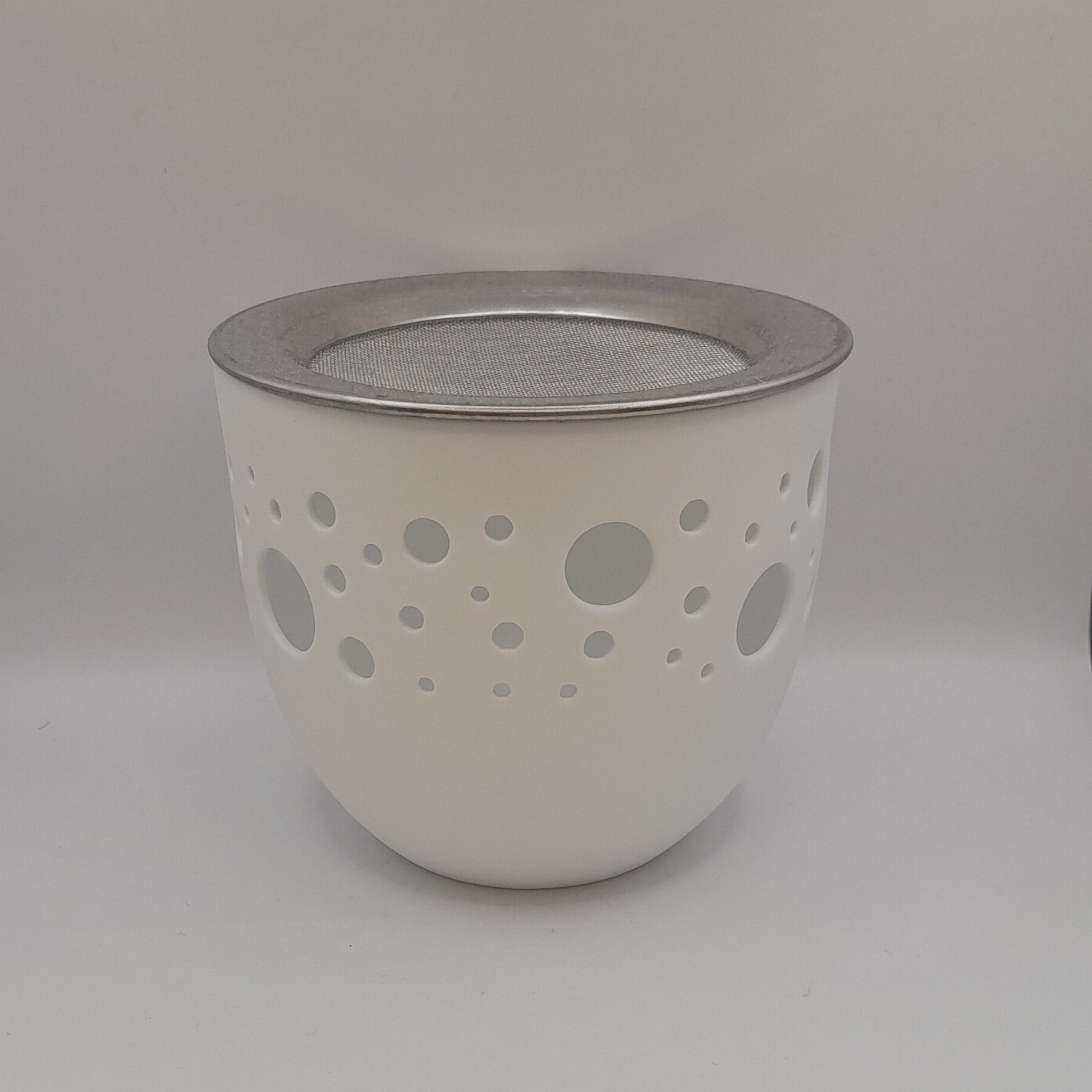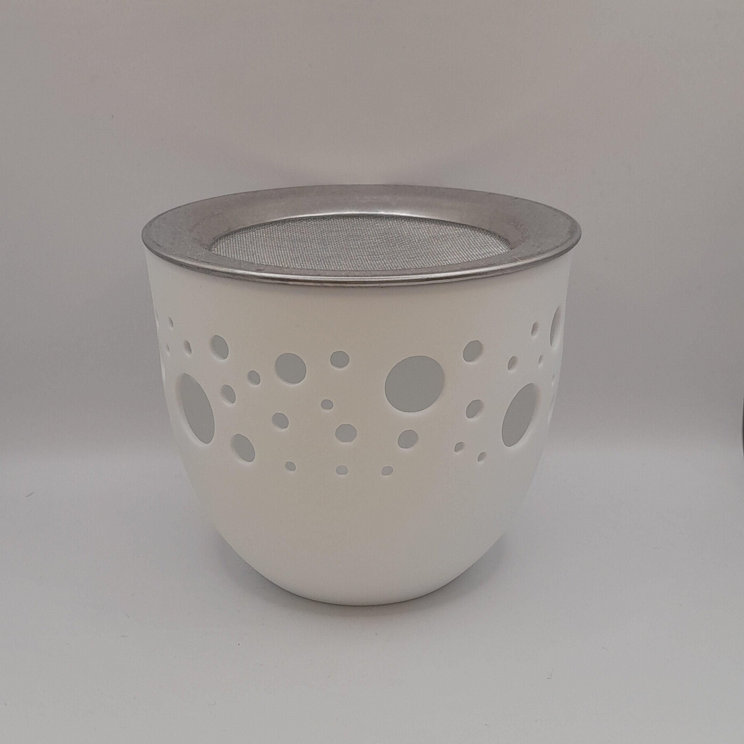 Porzellangefäß, wahlweise als Windlicht zu benutzen, oder mit dem mitgelieferten Sieb als Räuchergefäß - es wird nur noch ein Teelicht benötigt.